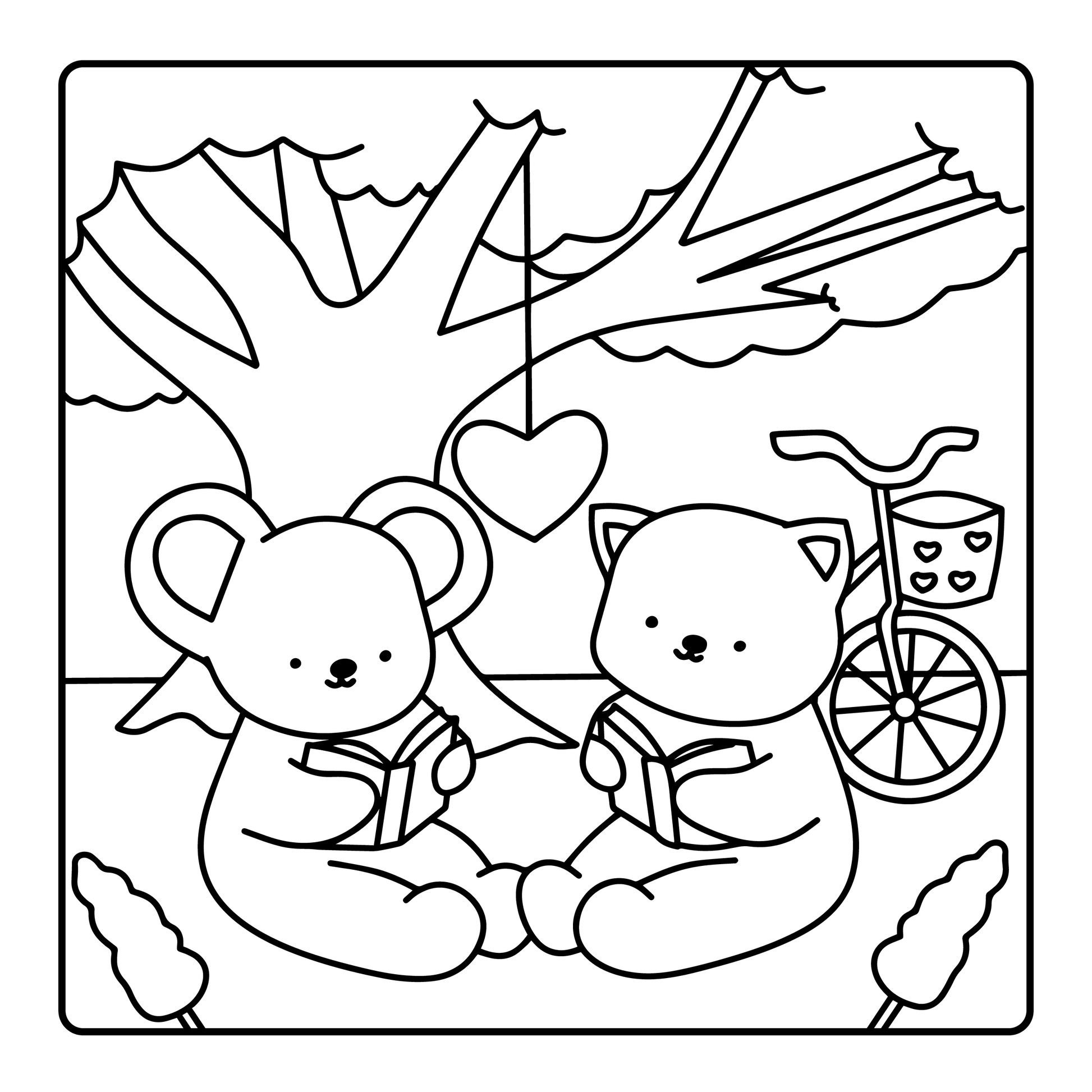 Herzige Motive für kleine Liebesbotschaften – von süßen Tieren bis zu romantischen Symbolen. Drei Seiten zum Ausmalen, Schenken und Liebhaben.